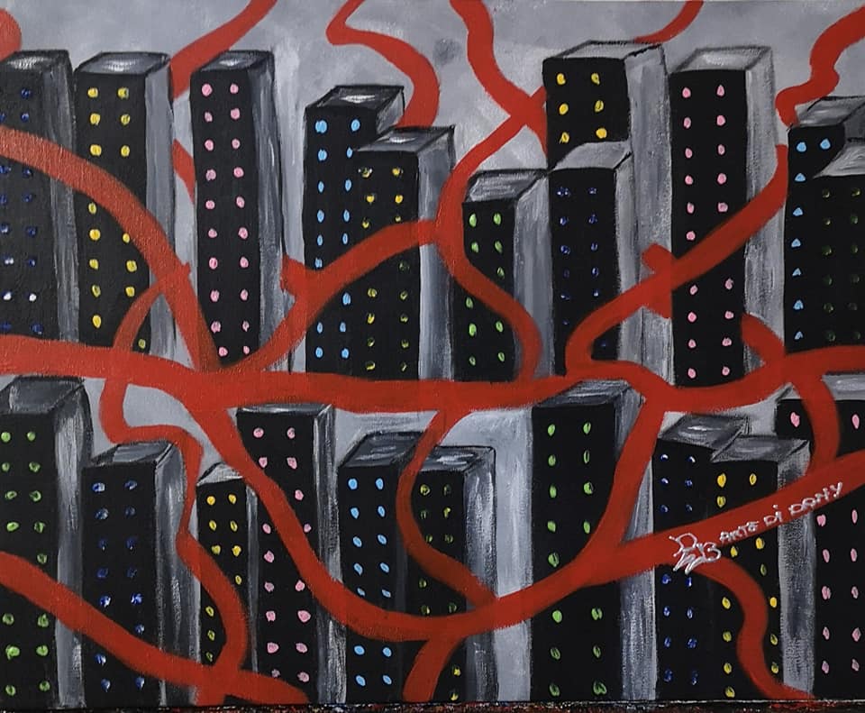 Con quest’opera, Daniela Bussolino riesce a duplicare il messaggio, enfatizzando, tuttavia, il disordine sociale e il degrado che deturpano le nostre città metropolitane.