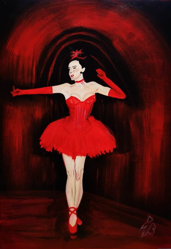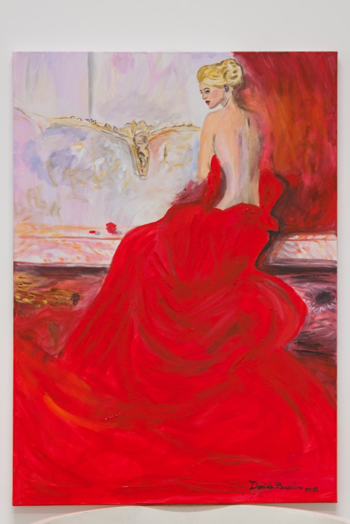 LA SIGNORA IN ROSSO, Acrilico su tela 50×70