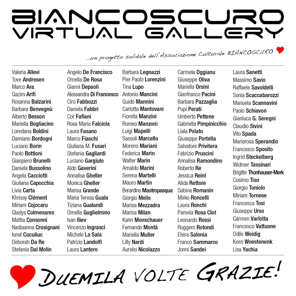Grazie alla partecipazione alla galleria virtuale di BIANCOSCURO, Daniela Bussolino ha contribuito a donare 2000 euro alla Protezione Civile, insieme agli altri artisti partecipanti.