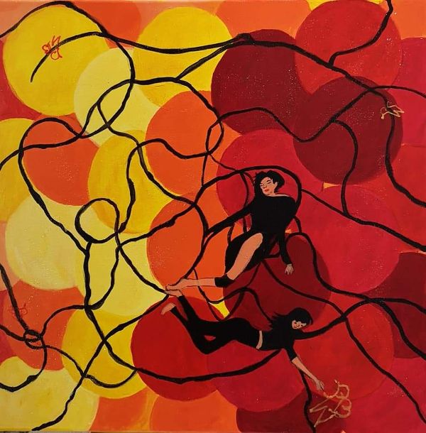 Danzatrici acrobatiche è stata esposta in Campidoglio, il 29 ottobre 2019, durante l’evento istituzionale COLORI DI PACE, scambio interculturale tra Sri Lanka e Italia.