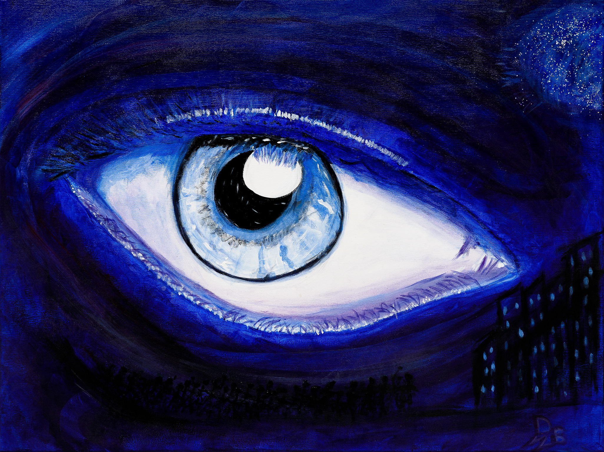 E Daniela Bussolino non si è mai fermata, né durante il 2020, tanto meno nel 2021. Sebbene, come tutte le persone dotate di forte sensibilità, sia stata toccata dalla pandemia, l’artista astigiana ha continuato a esprimersi attraverso l’arte. Tuttavia, anziché prodigarsi solo nelle sue espressioni più consuete, le donne e i ballerini stilizzati, ha trovato nei tormenti esistenziali dovuti alle circostanze che viviamo da febbraio 2020 un bacino di emozioni da cui ha attinto per alimentare alcune creazioni anche sul tema della pandemia.