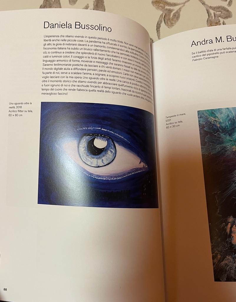 Daniela Bussolino è un’artista prevalentemente emotiva, che veicola emozioni, e quanto vissuto in questi mesi è emerso certamente nei suoi colori e nelle opere presentate nei cataloghi in oggetto.