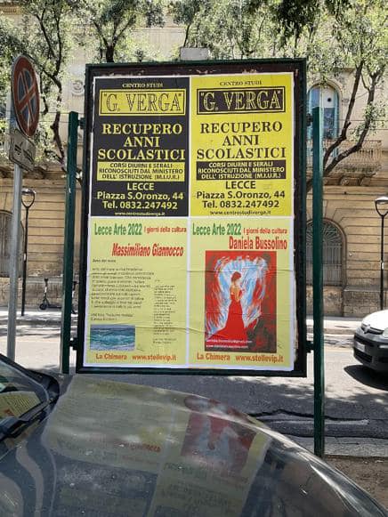 Daniela Bussolino ha esposto in luglio sia a Gattinara (VC), durante l’evento Omaggio a Pasolini – Gattinara, presso le sale di Villa Paolotti, con la direzione artistica di Pasquale Di Matteo, sia a Lecce, con la direzione artistica del centro culturale La Chimera, di cui è direttrice la dott.ssa Anna Maria Gentile.