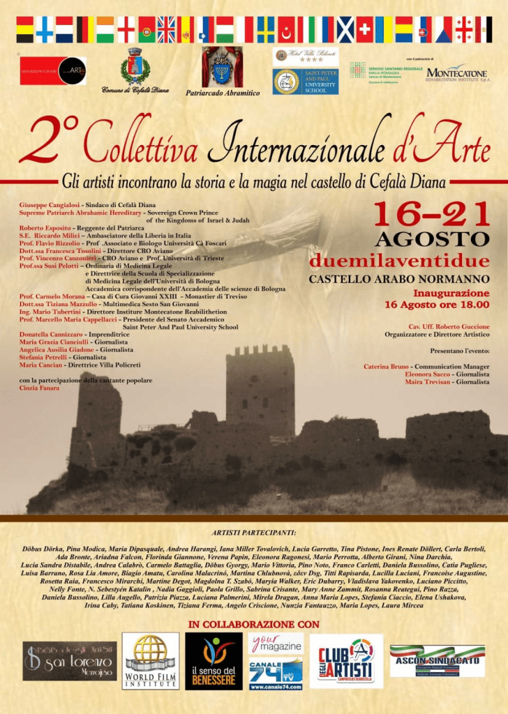 Dal 16 al 21 agosto, sarà protagonista al Castello Arabo Normanno di Cefalà Diana, in provincia di Palermo, durante la II Collettiva Internazionale d’Arte.