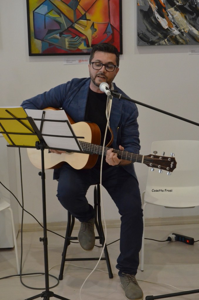 Se a marzo erano stati il chitarrista Stefano Scariot e la violinista Paola Tezzon a intrattenere gli ospiti accorsi in Gabetti Arte, questa volta è stato lo stesso critico d’arte, Pasquale Di Matteo a esibirsi chitarra e voce, proponendo due canzoni scritte appositamente in onore degli artisti partecipanti all’evento, più un terzo brano strumentale sempre a sua firma.