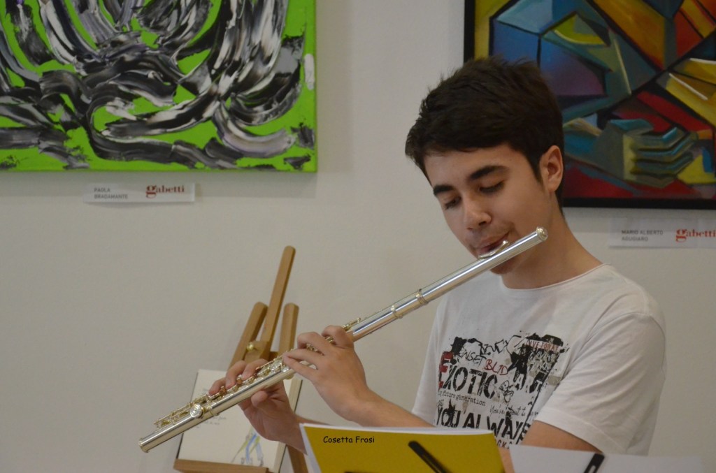 L’introduzione musicale è terminata con un brano di Vivaldi, suonato al flauto traverso da Tommaso Di Matteo, figlio del critico d’arte.