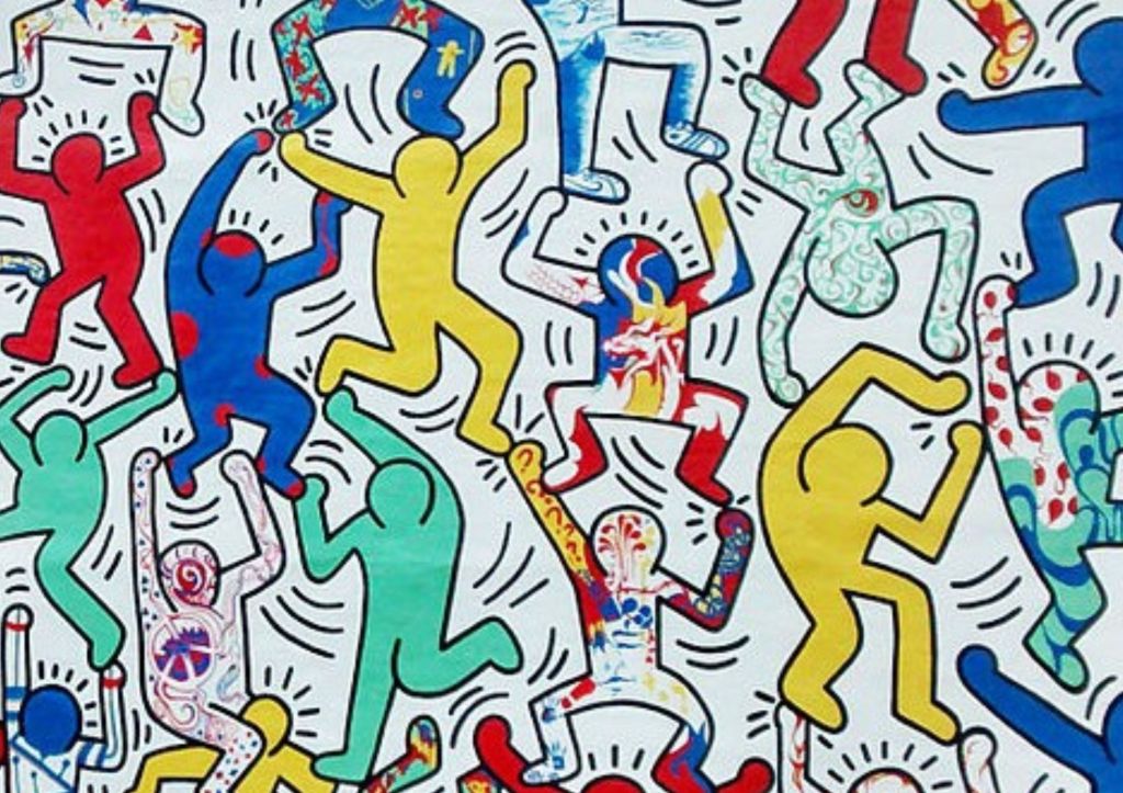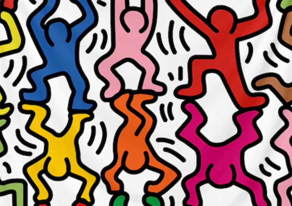 Allo stesso modo, Haring è noto per le sue figure umane stilizzate, delineate con linee spesse e contorni netti.