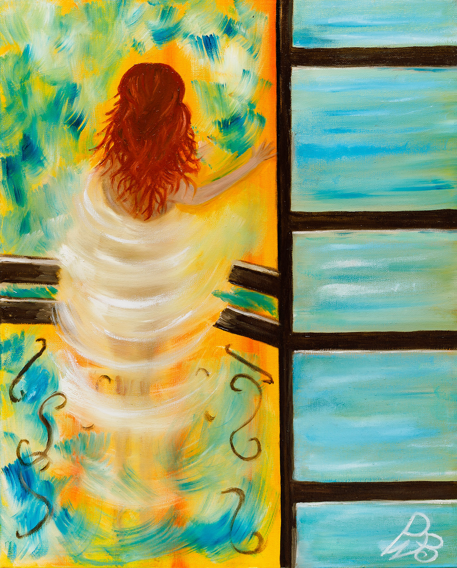 C’è una cosa che quasi tutti notano, prima o poi. Si fermano davanti a uno dei miei quadri, guardano la figura femminile al centro e, dopo qualche secondo, dicono: “Perché non guarda verso di noi?”