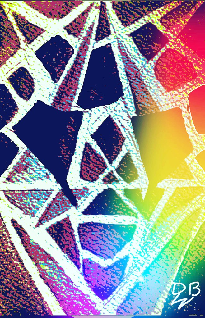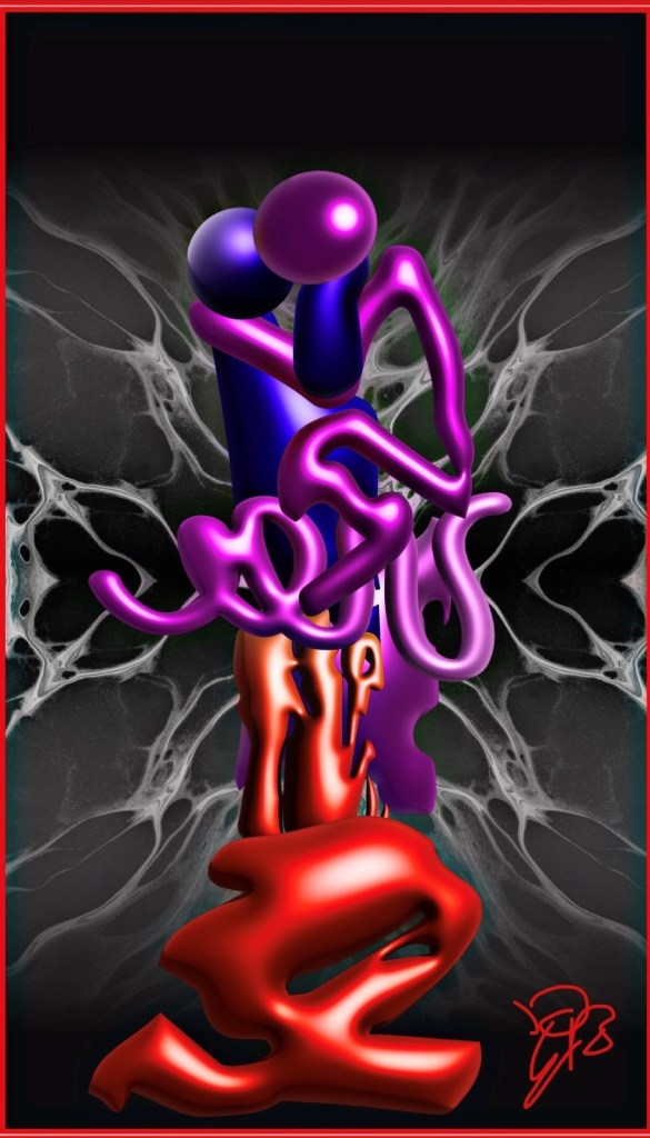 L’opera si presenta con una struttura cromatica suddivisa in fasce orizzontali che vanno dal blu profondo al rosso acceso, scelta di colori che non è casuale: il blu e il verde suggeriscono serenità e speranza, mentre il rosso e l’arancione evocano passione e conflitto.